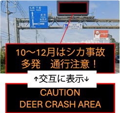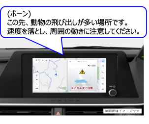 ロードキル多発区間を走行するドライバーに対し、危険箇所を事前に知らせ、安全運転を促すための情報提供を強化します。