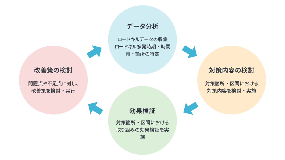 データ駆動型のロードキル対策を、PDCAサイクルを回しながら進めます。
