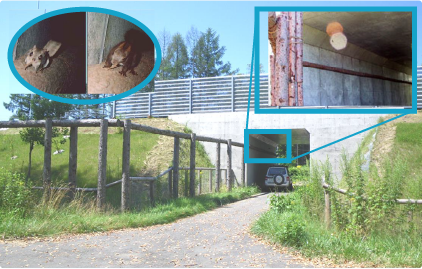 動物の移動経路として、ボックスカルバートや樹木を用いた移動用足場を設置した事例