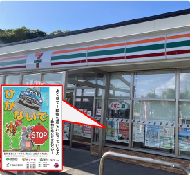 起沿道のコンビニエンスストアでの啓発ポスター掲示